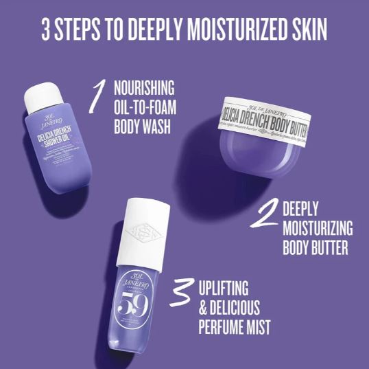 Sol de Janeiro Drench & Dazzle Set es un set corporal hidratante y perfumado pensado para pieles que necesitan máxima nutrición, con el aroma adictivo Cheirosa 59 / Delícia Drench.