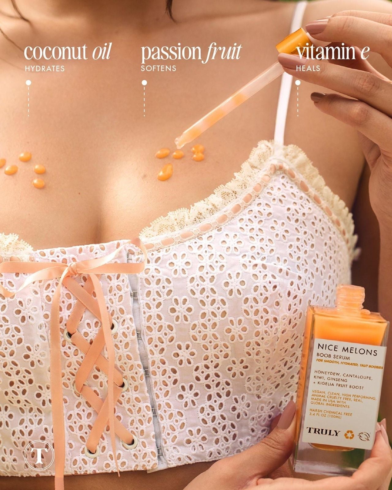 Aplicar de 3 a 5 gotas en los senos para ayudar a reafirmarlos.
